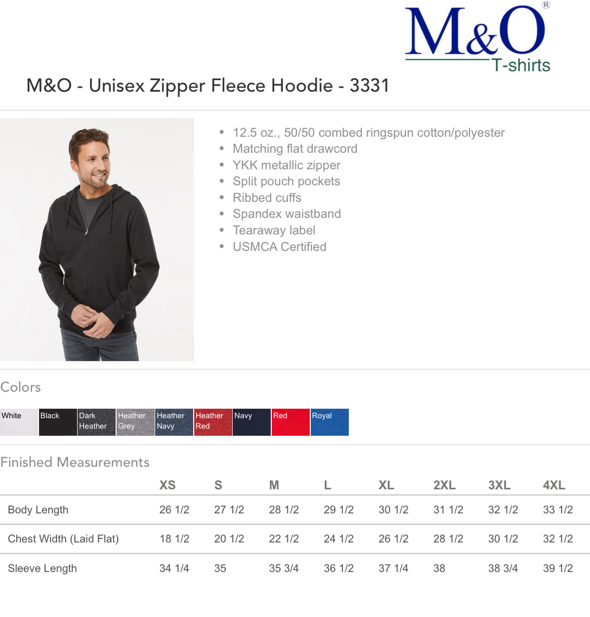 - cotton blend zip up black hoody M&O brand